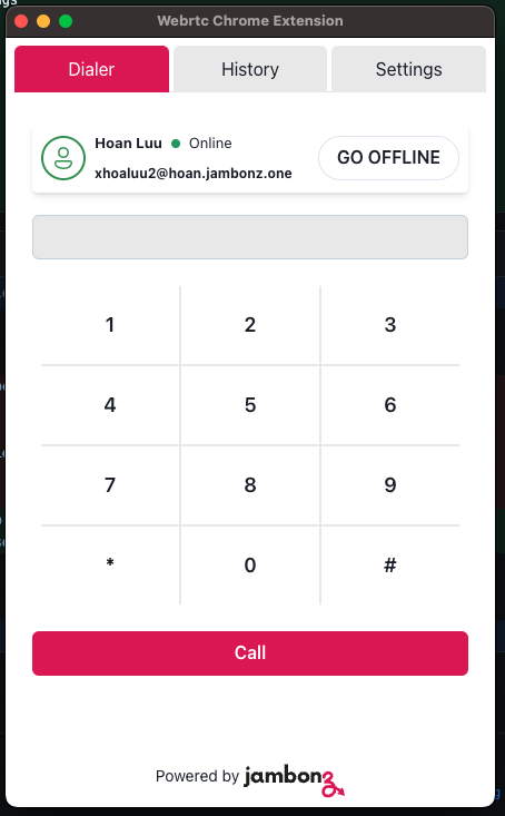 Jambonz Webrtc Chrome extension dialer