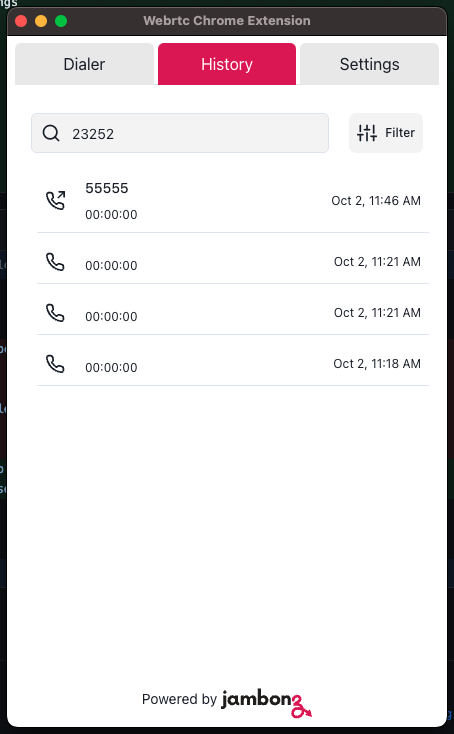 Jambonz Webrtc Chrome extension dialer